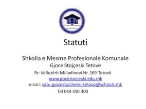 Në vitin shkollor 2021/22 SH.M.P.K. “GjoceStojçeski”-Tetovë vepron si Shkollë e Mesme Profesionale-Publike Komunale me tre drejtime themelore të shkallës së IV-ërt arsimore si vijon: